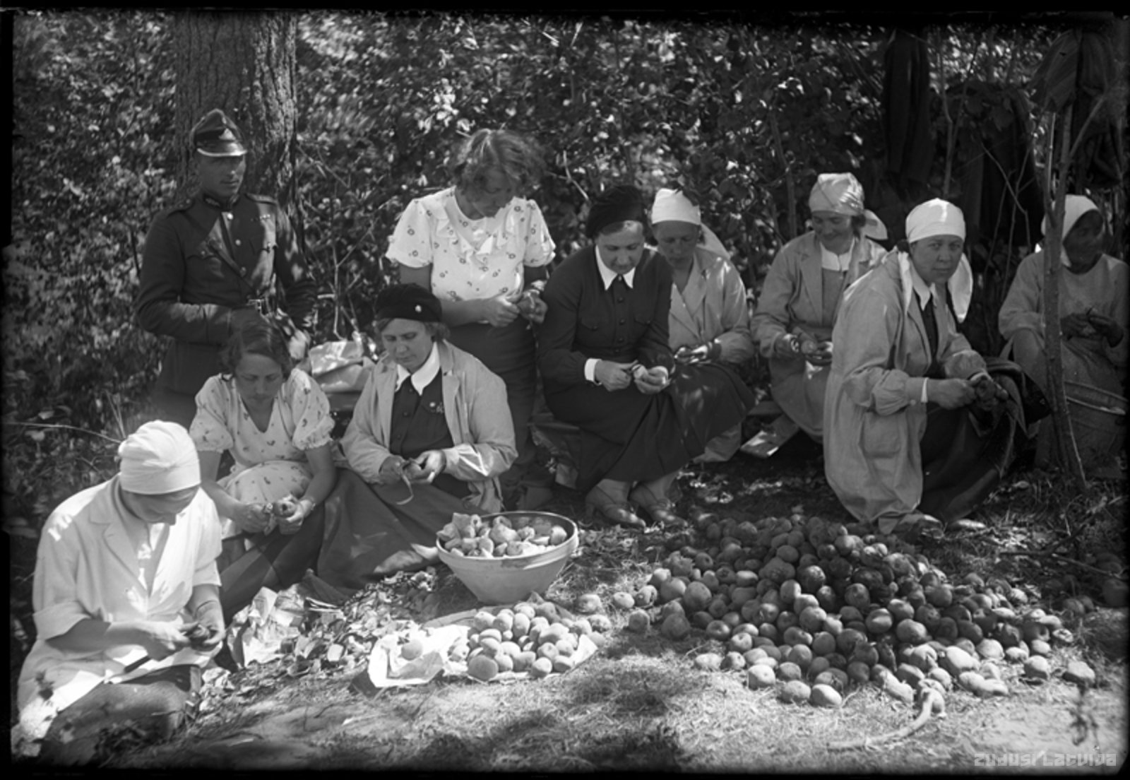 Sievietes ārā mizojot kartupeļus 20. gadsimta 20. gadi