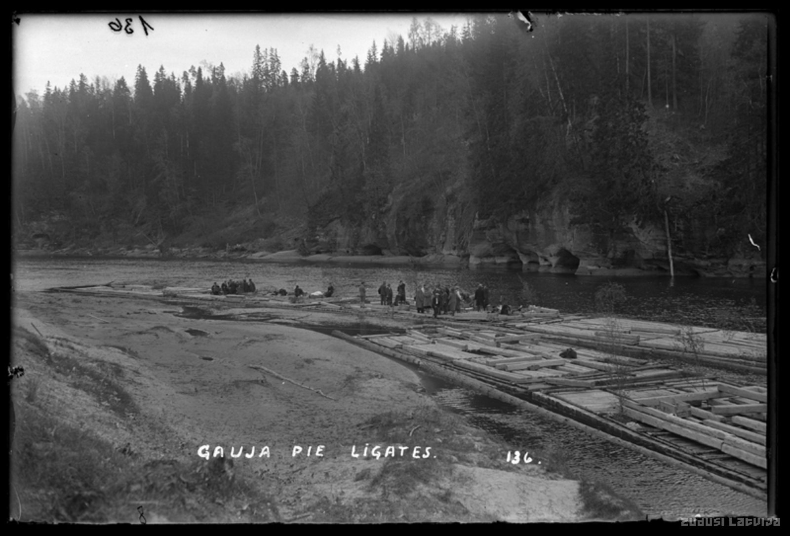 Kokmateriālu pludināšana pa Gauju pie Līgatnes 20. gadsimta 20. gados.