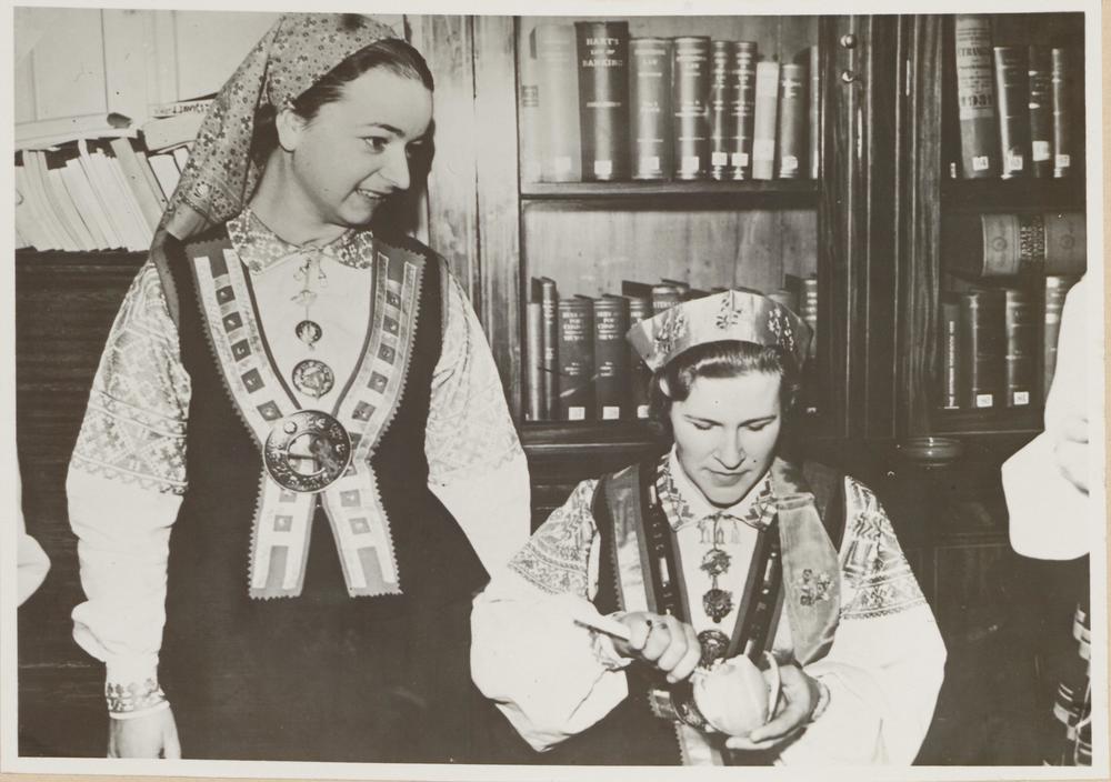Teodora Reitera kora dalībnieces tautastērpos, pieņemšanā Latvijas Republikas vēstniecībā Londonā, 87 Eaton Place.