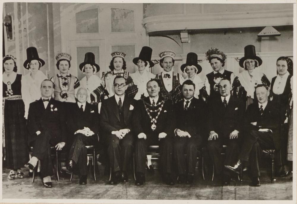 Teodora Reitera kora dalībnieces pieņemšanā pie Monmousšīras grāfistes Ņūportas pilsētas mēra (1938-1939) Džona Roberta Vardela (John Robert Wardell) ar Velsas sieviešu kora dalībniecēm. No labās: 3. Latvijas Nacionālās operas diriģents (1918-1944) un kora vadītājs Teodors Reiters, 4. Džons Roberts Vardels. Grupas foto.