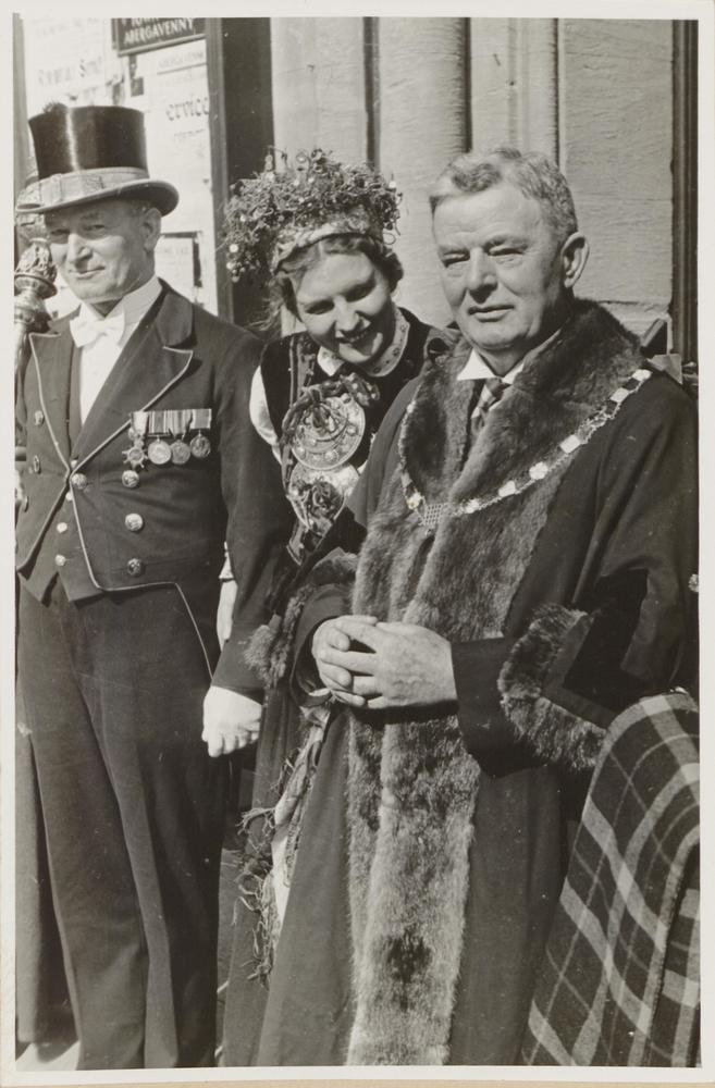Teodora Reitera kora dalībniece ar Monmousšīras grāfistes Abergavenī (Abergavenny) mēru Roseru un pilsētas heroldu. No labās 1. Rosers.