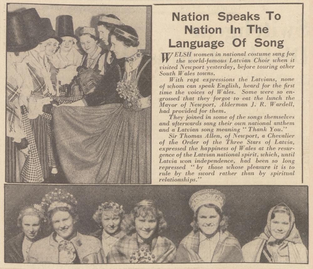 Teodora Reitera kora dalībnieces ar Monmousšīras grāfistes, Ņūportas pilsētas Velsas sieviešu kora dalībniecēm. Laikraksta raksta fotoreprodukcija.