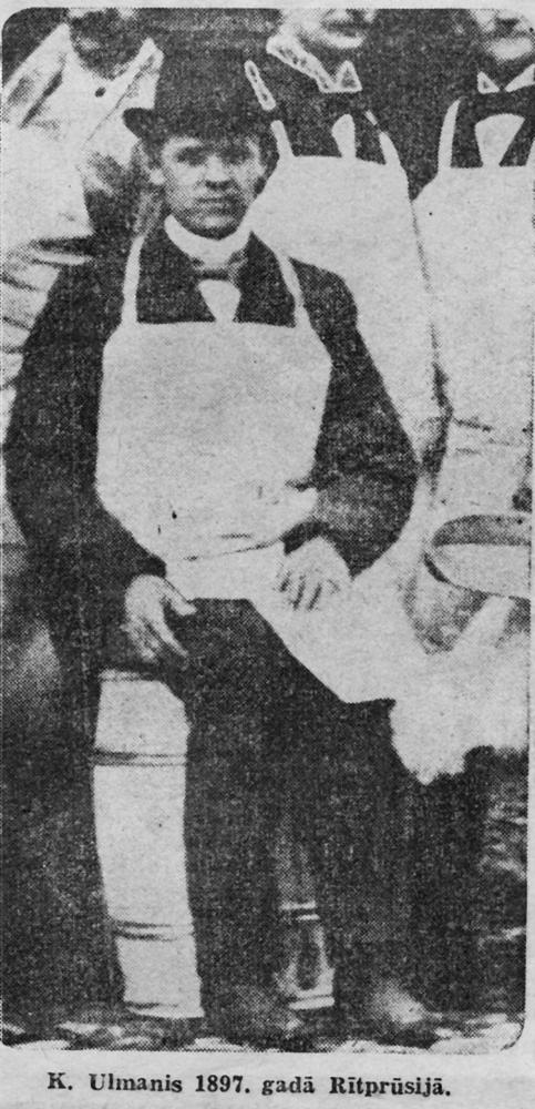 Kārlis Ulmanis mācību laikā, piensaimniecības kursos Rītprūsijā (tagad Kaļiņingradas apgabals). Laikraksta fotoreprodukcija.