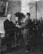 Jaunais virsnieks nodod solījumu Latvijas Valsts un Ministru prezidentam Kārlim Ulmanim (1. no kreisās). Latvijas Kara skolas priekšnieks, pulkvedis Arvīds Krīpens (2. no kreisās) piedalās savā pēdējā kara skolas izlaidumā, pirms stāšanās jaunajā amatā. Laikraksta fotoreprodukcija.