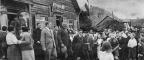 Latvijas Valsts un Ministru prezidents Kārlis Ulmanis pie veikala Ilūkstē, brauciena laikā pa Augšzemgali. Durvīs Zemgales divīzijas komandieris, ģenerālis Rūdolfs Bangerskis. Laikraksta fotoreprodukcija.