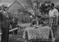 Latvijas Valsts un Ministru prezidents Kārlis Ulmanis, Ipiķu pamatskolas dārzā Ziemeļvidzemes reģionālās vizītes laikā, parakstās skolas viesu grāmatā. No kreisās: 1. iekšlietu ministrs Kornēlijs Veitmanis (no 1940. gadam Veidnieks), 2. Kārlis Ulmanis, 3. pamatskolas pārzine Elza Priedīte. Laikraksta fotoreprodukcija.