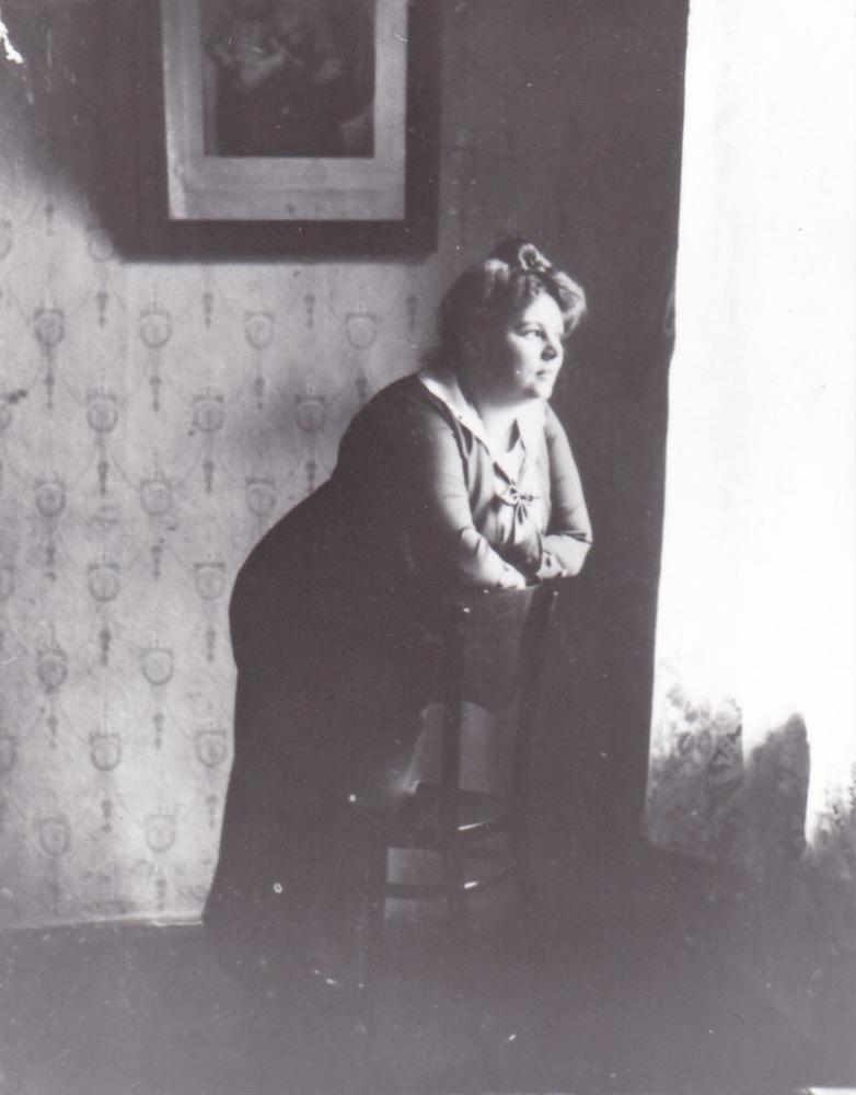 Sieviete istabā pie loga