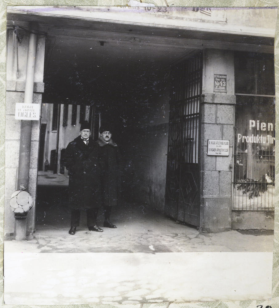 Skats uz pagalma iebrauktuves vārtiem pie 1. Rīgas atlētikas (atlētu) kluba telpām Cēsu ielā 43.