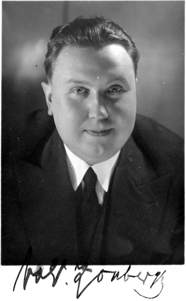 Dramaturgs Voldemārs Sauleskalns (līdz 1939. gadam Voldemārs Zonbergs). Latvijas Nacionālā teātra dramaturgs (1933-1938), Liepājas teātra direktors (1939). Portrets ar autogrāfu.