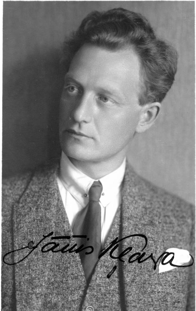 Aktieris un režisors Jānis Kļava. Portrets ar autogrāfu. No 1922. gada Jelgavas Latviešu teātra aktieris, mākslinieciskais vadītājs, no 1930. līdz 1940. gadam Daugavpils Latviešu dramatiskā teātra mākslinieciskais vadītājs.