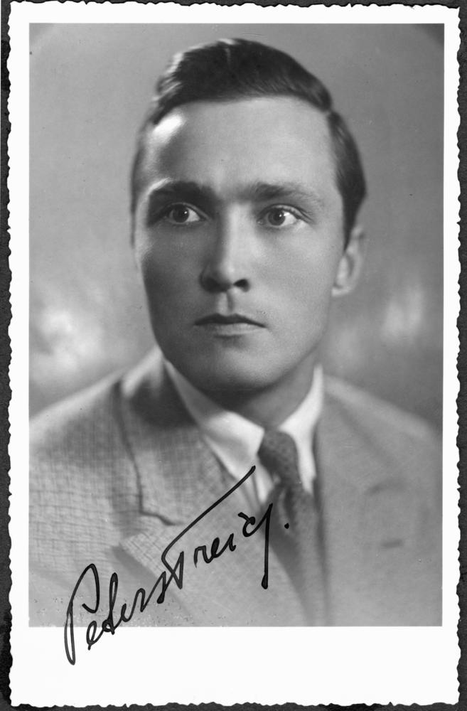 Aktieris Pēteris Treics. Rīgas Operetes teātra aktieris un režisors (1952-1966). Portrets ar autogrāfu.
