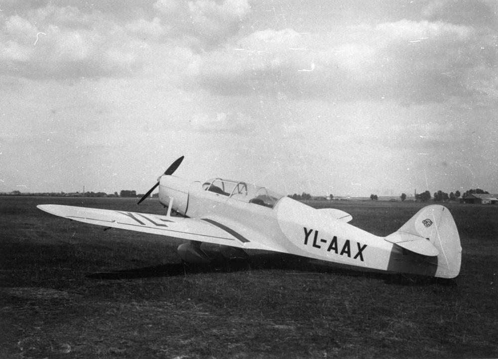 Kārļa Irbīša konstruētā un Valsts elektrotehniskajā fabrikā (VEF) 1936. gada vasarā uzbūvētā divvietīgā sporta un ceļojumu lidmašīna "VEF I-11", kura pēc lidspējas pārbaudes saņēma reģistrācijas burtus YL-AAX, Rīgas gaisa ostas lidlaukā Spilvē.