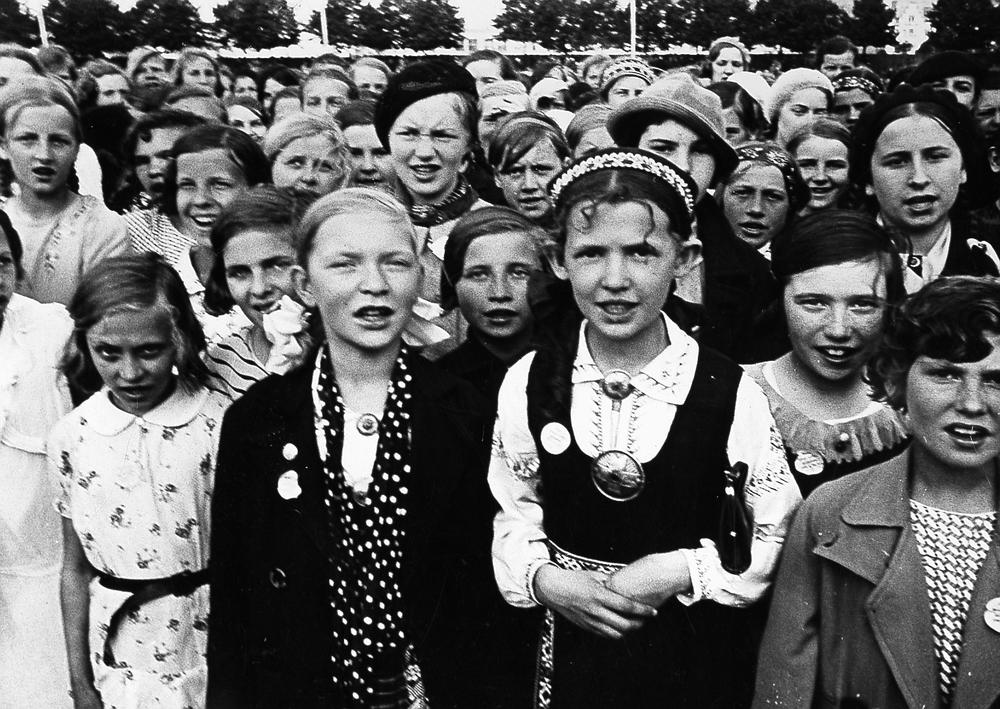Bērnu svētki Arkādijas parkā, Torņakalnā. Dzied meiteņu koris.