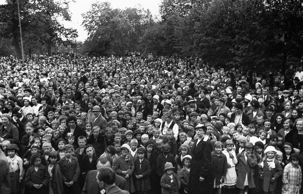 Bērnu svētki Arkādijas parkā, Torņakalnā. Svētku dalībnieku kopskats.