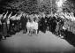 Bērnu svētki Miera dārzā, Latgales priekšpilsētā. Goda viesu sagaidīšana ar špaleru. 1. rindā no kreisās: 1. Izglītības ministrijas tautskolu direktors Mārtiņš Soste, 2. Latvijas Valsts un Ministru prezidentu Kārlis Ulmanis, 3. izglītības ministrs Augusts Tentelis.