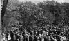 Bērnu svētku dalībnieki sveic goda viesus Saules dārzā, Mežaparkā.