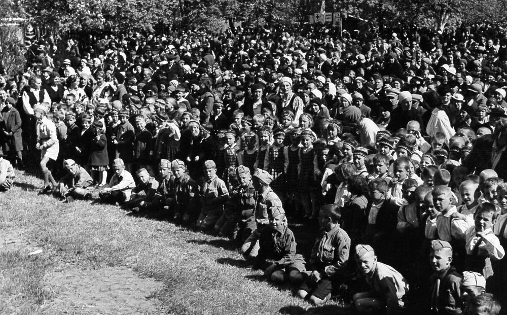 Bērnu svētku dalībnieku kopskats Saules dārzā, Mežaparkā.