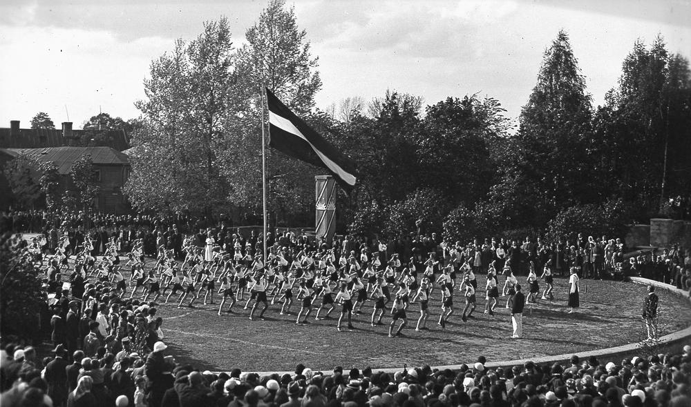 Bērnu svētku atklāšana Dzegužkalnā. Vingrotāju priekšnesumi.