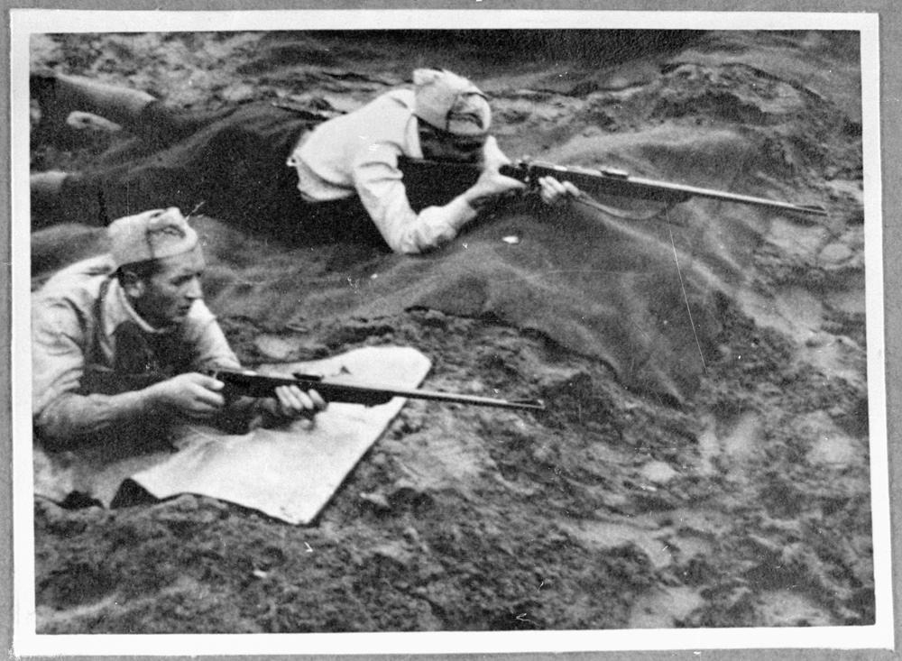Latvijas Skautu centrālās organizācijas skauti mācās šaut ar šauteni.
