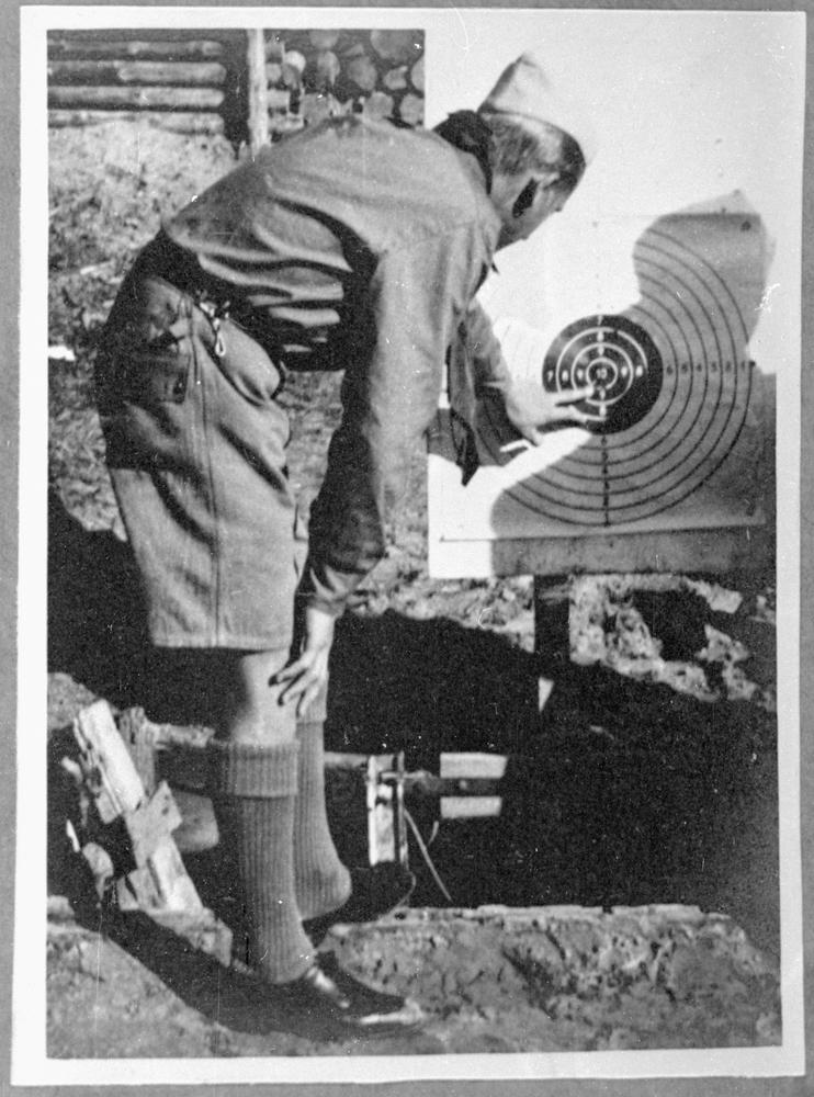Latvijas Skautu centrālās organizācijas skauti mācās šaut ar šauteni. Skauts apskata mērķi.