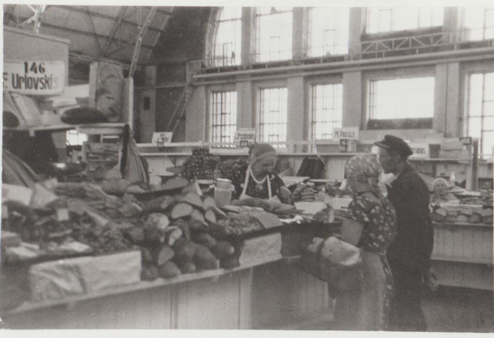 Pircēji pie maizes izstrādājumu stenda Rīgas Centrāltirgus paviljonā.