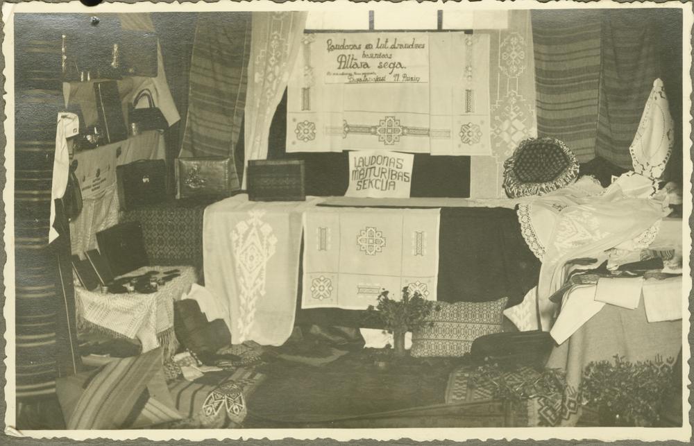 Ļaudonas pļaujas svētku skatē izstādītie Ļaudonas mājturības sekcijas rokdarbi - dekoratīvi ādas izstrādājumi, izšuvumi. To vidū Ļaudonas evanģēliski luteriskās draudzes baznīcas altāra sega.