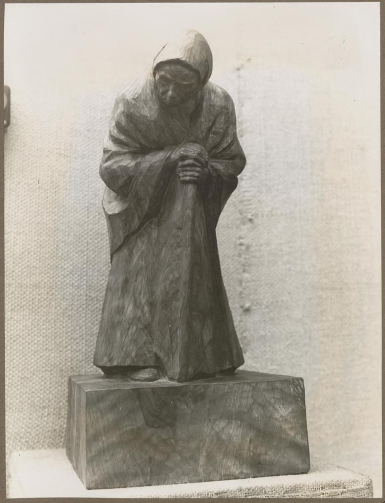 Latviešu tēlnieka skulptūra (koks) Briseles starptautiskajā izstādē.