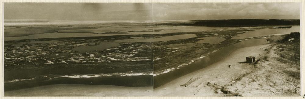 Spridzināšanas rezultātā sasmalcinātais ledus Gaujas grīvā.