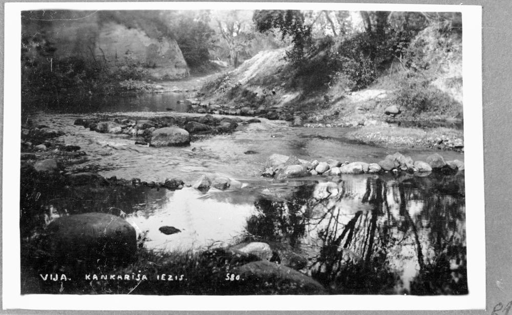 Vijas upes ieteka Gaujā. Skats uz sarkano smilšakmens atsegumu - Kankarīšu iezi.