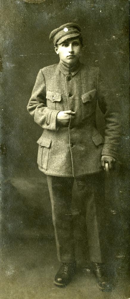 Vīrietis ar spieķi. Viņam Latvijas Sarkanā Krusta ortopēdiskajā darbnīcā Pērnavas ielā 62 izgatavota kājas protēze (albuma foto Nr. 38).