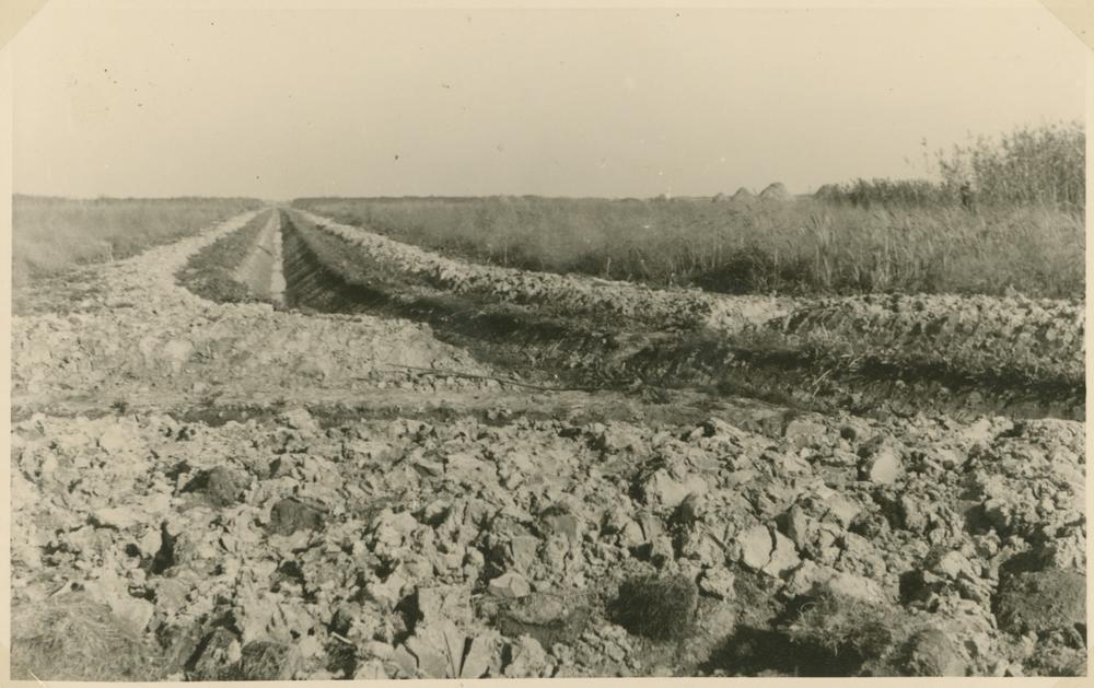 Nosusināšanas grāvis Lubānas ezera gultnē. Meliorācijas darbi Lubānas ezera apkaimē.