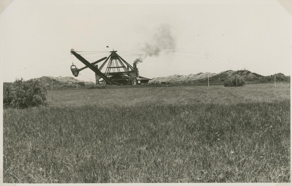 Zemes smelšanas darbi Ičas upē vasarā. Centrā - bagarmašīna "Spēkonis" rok Inčas pārrakumu. Meliorācijas darbi Lubānas ezera apkaimē.