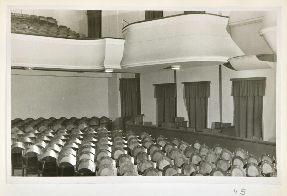 Tautas nama zāles interjers. Sākotnēji ēka 1937. gadā celta (pēc Vernera Vitanda projekta) kā Vienības nams Daugavpilī (tagad ēkā atrodas: Daugavpils teātris). Adrese: Rīgas ielā 22A. Atjaunošanas darbi 1949. gadā, ko organizēja Latvijas PSR Komunālās saimniecības ministrijas Projektēšanas trests.