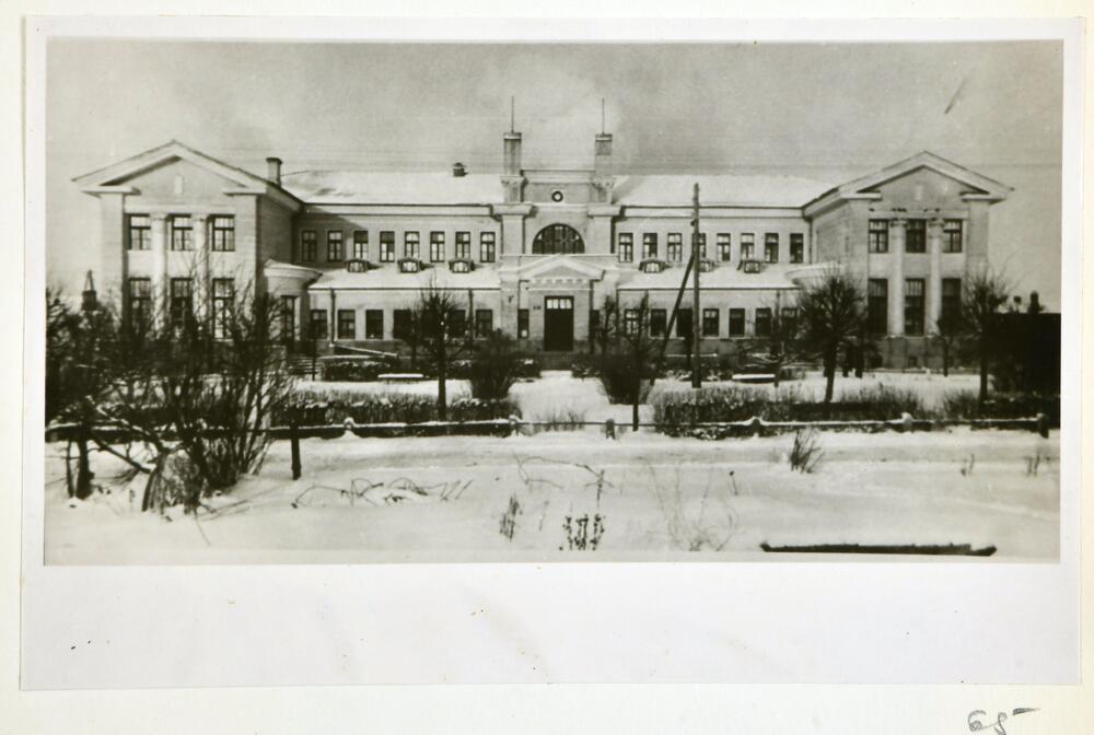 Gulbenes dzelzceļa stacijas fasāde no pilsētas puses. Atjaunošanas darbus projektēja arhitekts Boriss Sudoplatovs, PSRS Satiksmes ceļu ministrijas "Sojuztransprojekt", pasūtītājs: Latvijas dzelzceļa pārvalde. Ēka sākotnēji celta 1926. gadā (arhitekts Pēteris Feders), sapostīta Otrā pasaules kara laikā (1944. gadā), bet pēc kara atjaunota iepriekšējā izskatā.