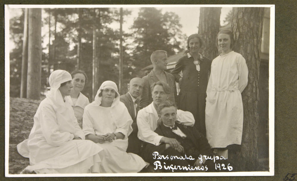 Latvijas Tuberkulozes apkarošanas biedrības Biķernieku bērnu sanatorijas personāls. Grupas foto. (Tagad Brīvības gatvē 384A atrodas Rīgas sanatorijas internātpamatskola).