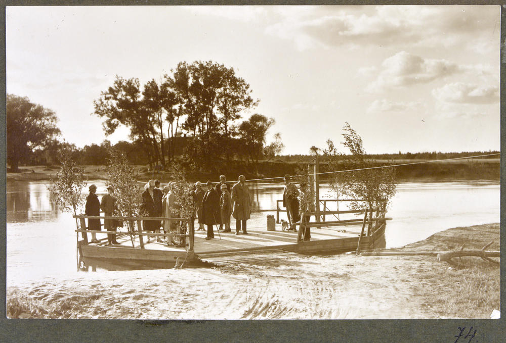 Latvijas Tuberkulozes apkarošanas biedrības bērnu sanatorijas "Gauja" viesi uz upes plosta.