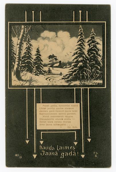 1 melnbalta atklātne; 14 x 9 cm
