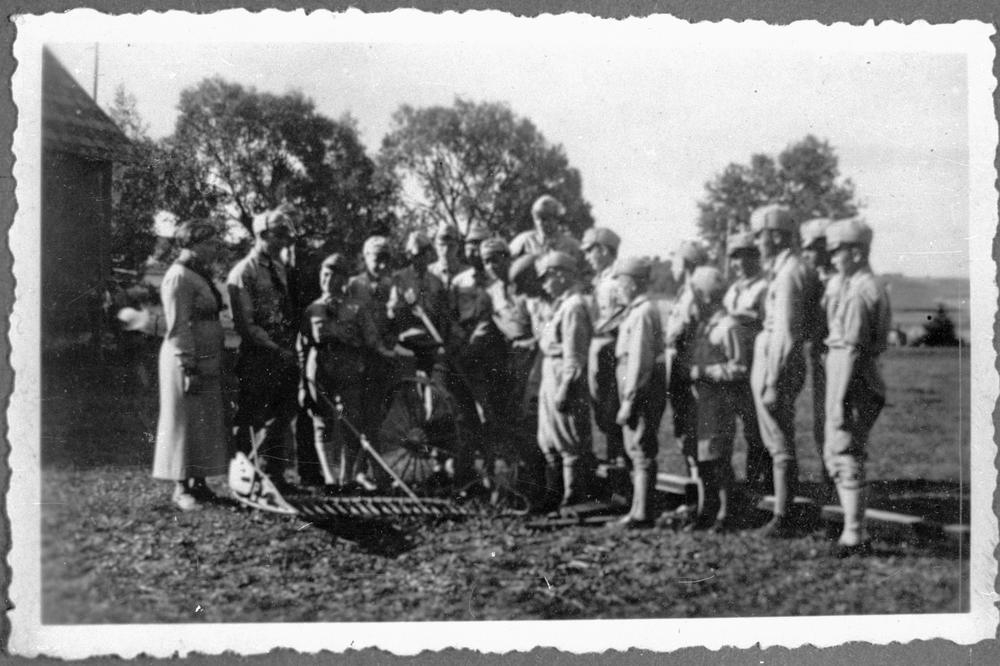 Ikšķiles vasaras mazpulku nometnes dalībnieki iepazīstas ar lauksaimniecības inventāru.