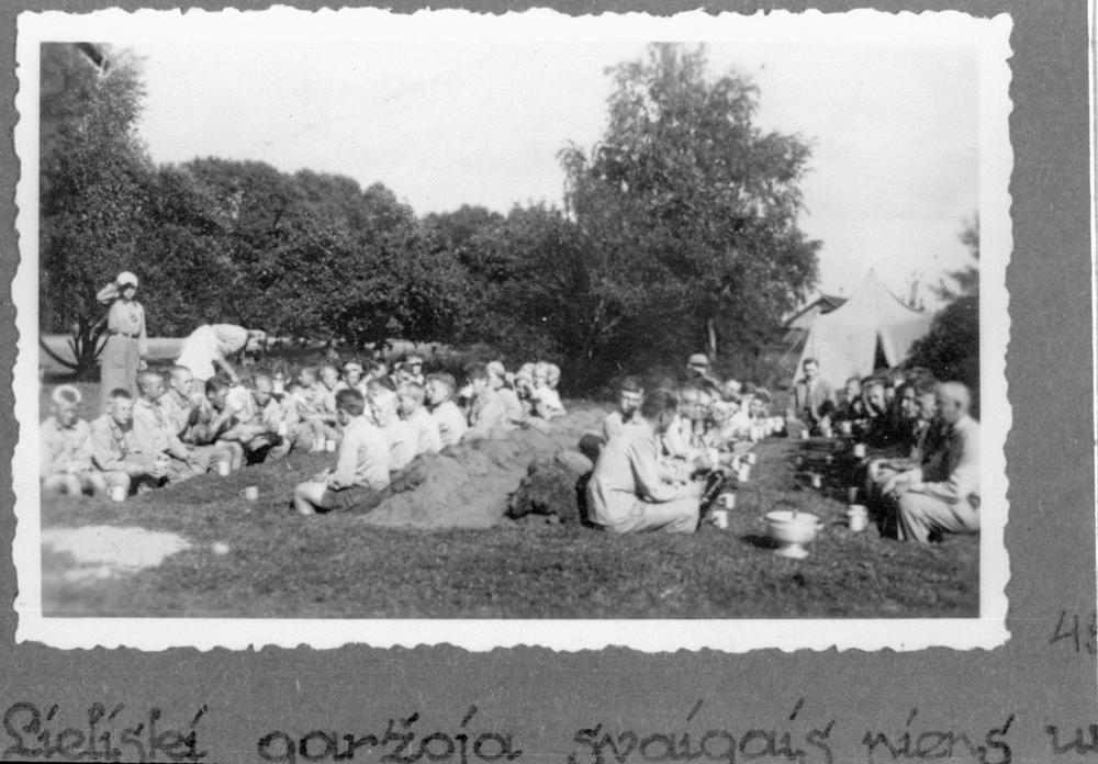 Mazpulku vasaras nometne Ikšķilē mazpulki ēdienreizē dzer pienu un ēd lauku maizi.