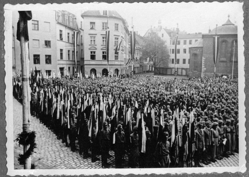 Lielā skolu jaunatnes parāde Doma laukumā Latvijas Tautas vienības svētkos.