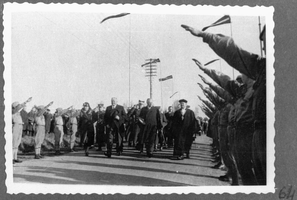 Mazpulku ierindas sveic valdības pārstāvjus un amatpersonas, kas ieradušās Sidrabkalniņā (Sudrabkalniņā pie Tiltiņu mājām, Slokas ielā 113) uz pieminekļa atklāšanu Rīgas aizstāvjiem no 6. Rīgas kājnieku pulka, kas krituši Rīgas atbrīvošanas cīņās 1919. gadā. No kreisās: 1. pieminekļa celšanas biedrības priekšniece Emma Viktorija Albertiņa, 2. Latvijas Valsts un Ministru prezidents Kārlis Ulmanis, 3. kara ministrs, ģenerālis Jānis Balodis, 4. Latvijas armijas mācītājs Pēteris Apkalns.
