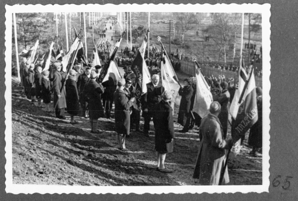 Mazpulku ierindas sagaida ar sveicienu viesus, kas ieradušies Sidrabkalniņā (Sudrabkalniņā pie Tiltiņu mājām, Slokas ielā 113) uz pieminekļa atklāšanu Rīgas aizstāvjiem no 6. Rīgas kājnieku pulka, kas krituši Rīgas atbrīvošanas cīņās 1919. gadā. Viesu pulka vidū: Latvijas Valsts un Ministru prezidents Kārlis Ulmanis.