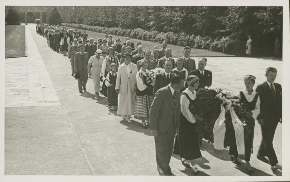 Baltijas valstu un Eiropas ziemeļvalstu Jaunatnes Sarkanā Krusta reģionālās konferences dalībnieku gājiens Rīgas Brāļu kapos.