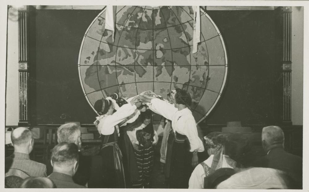 Baltijas valstu un Eiropas ziemeļvalstu Jaunatnes Sarkanā Krusta starptautiskās konferences laikā Igaunijas pārstāvji Armijas virsnieku klubā izpilda igauņu tautas deju.