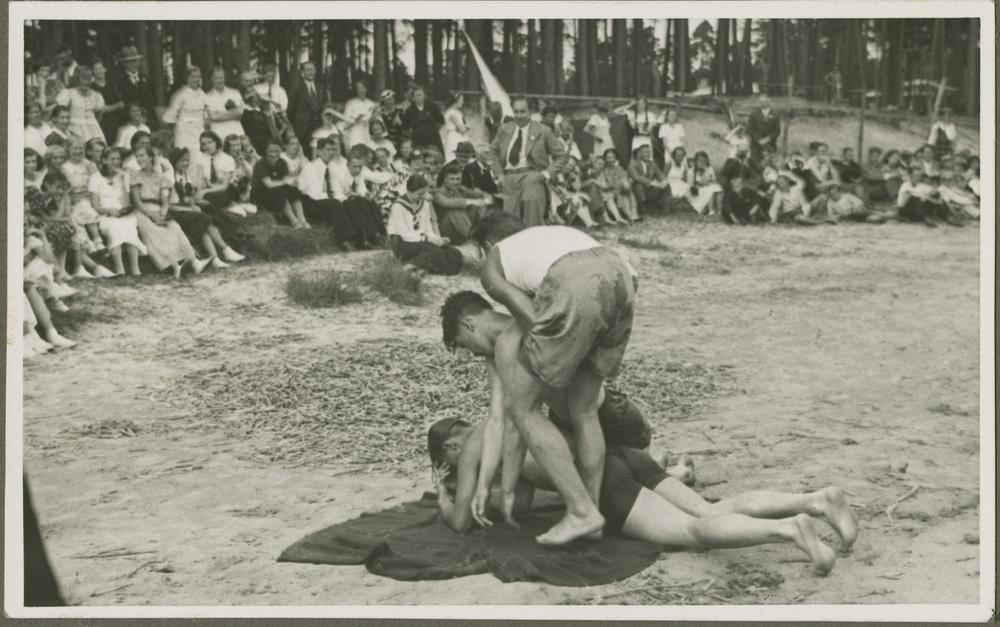 Baltijas valstu un Eiropas ziemeļvalstu Jaunatnes Sarkanā Krusta starptautiskās konferences dalībniekiem 543. Šampētera pulciņa biedri Lielupē demonstrē slīcēju glābšanas paņēmienus.