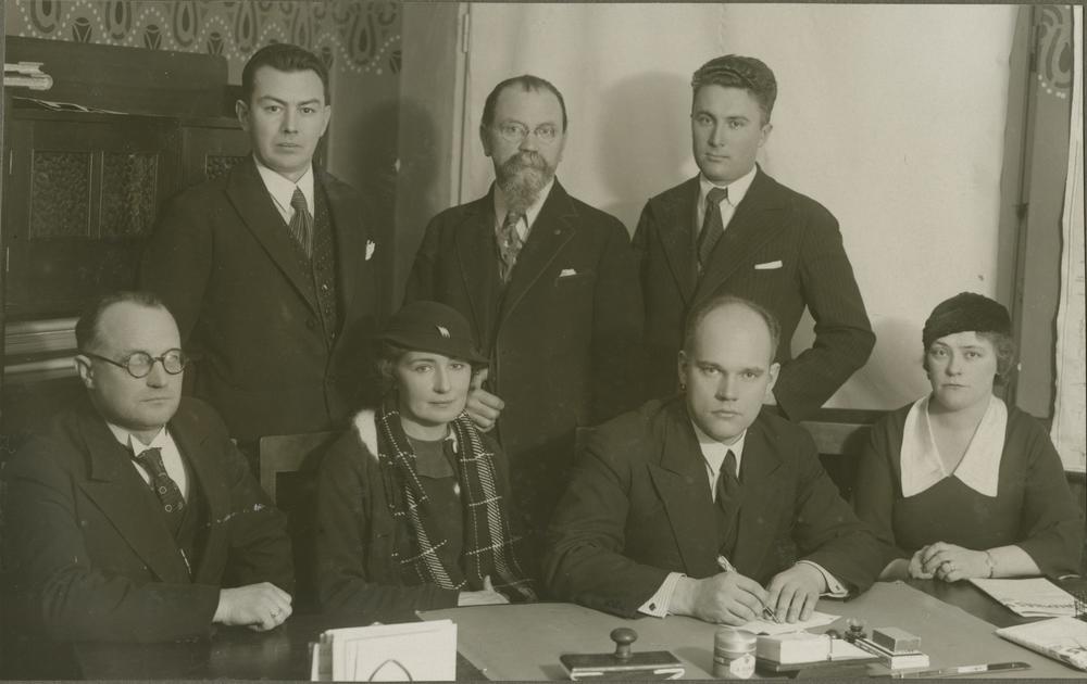 Latvijas Jaunatnes Sarkanā Krusta skolotāju sekcijas valde. 1. rindā no labās 2. Rīgas pilsētas 27. pamatskolas skolotājs Romāns Šmits. Grupas foto.
