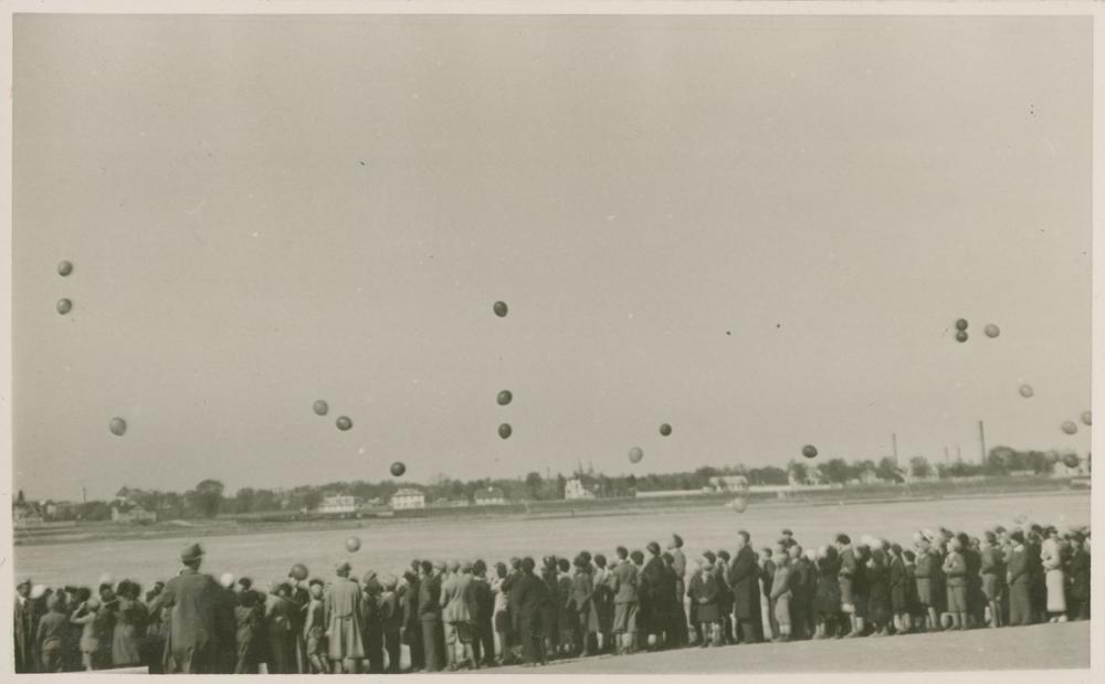 Baltijas valstu un Eiropas ziemeļvalstu Jaunatnes Sarkanā Krusta starptautiskās konferences laikā dalībnieki Daugavmalā nosūta "apsveikuma" gaisa balonus.