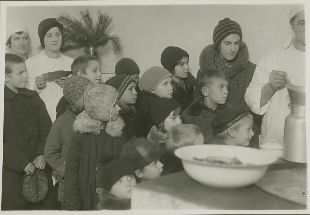 Bērni Latvijas Jaunatnes Sarkanā Krusta ēdināšanas punktā.