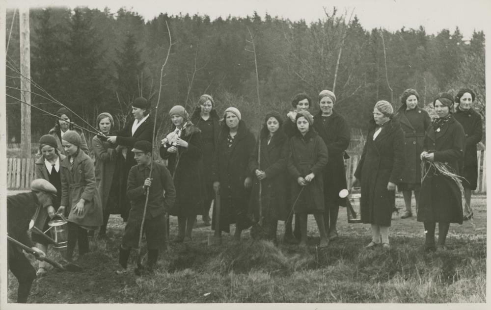 Latvijas Jaunatnes Sarkanā Krusta organizācijas Smiltenes pilsētas 2. pamatskolas pulciņa biedri stāda kociņus.