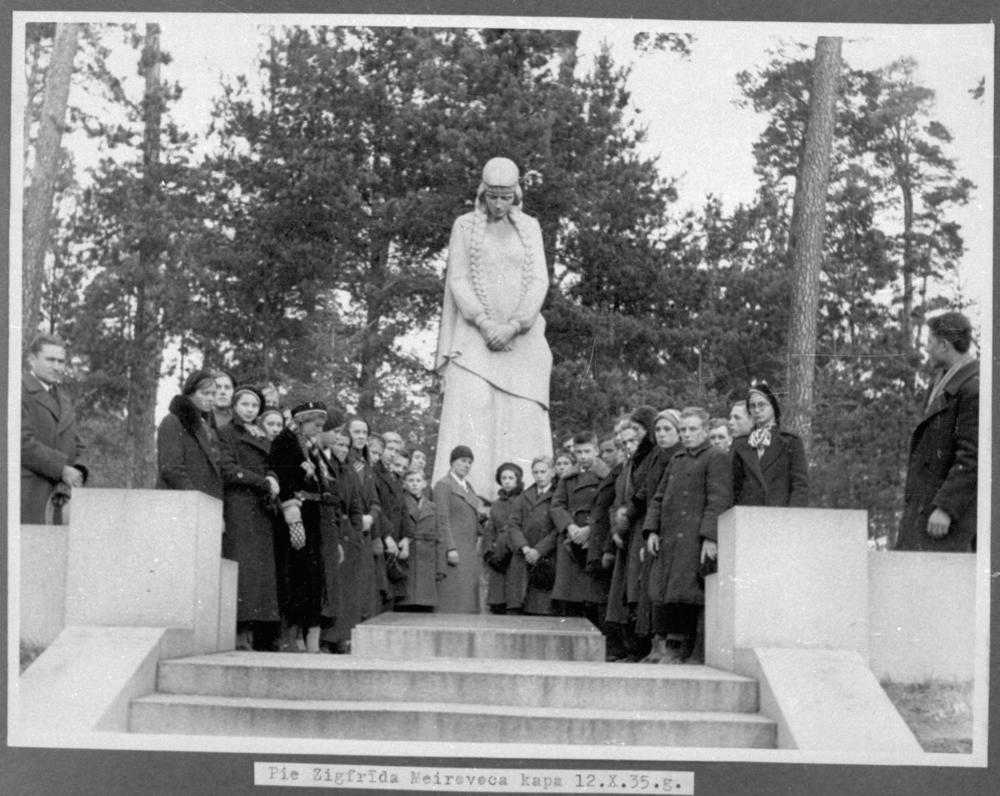 Tukuma mazpulka organizācijas dalībnieki pie pirmā Latvijas Ārlietu ministra un otrā Latvijas Republikas Ministru prezidenta Zigfrīda Anna Meierovica kapa pieminekļa Rīgas Meža kapos.